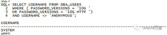 WHERE ( PASSWORD_VERSIONS = '10G '