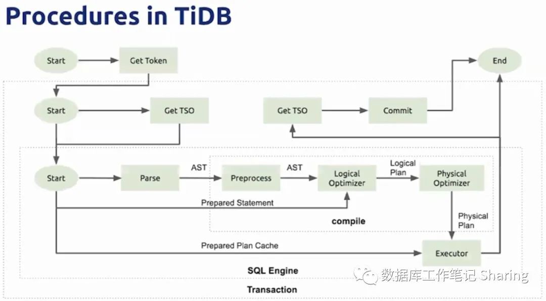 1. 当Sql进入TiDB时先获取Token,事务开始时获取Start TS (异步方式获取)