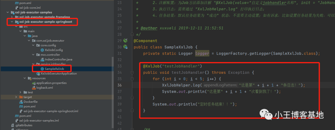 里面的名字即可,小编这里是:@XxlJob("testJobHandler")