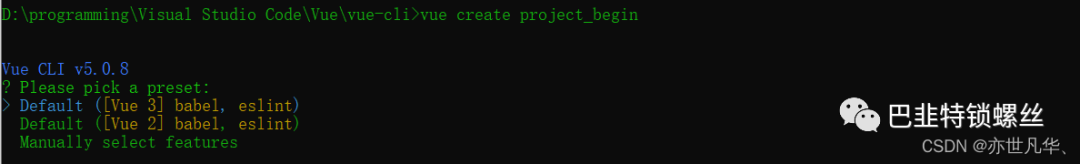 三个选择的区别:顾名思义前两个是帮助程序员自动创建 Vue2 和 Vue3 的项目;第三个选项则是让程序员来进行手动安装哪些功能到Vue项目中,主动权完全交给程序员。建议日常开发中选择第三种选项,这种可定制性很高。