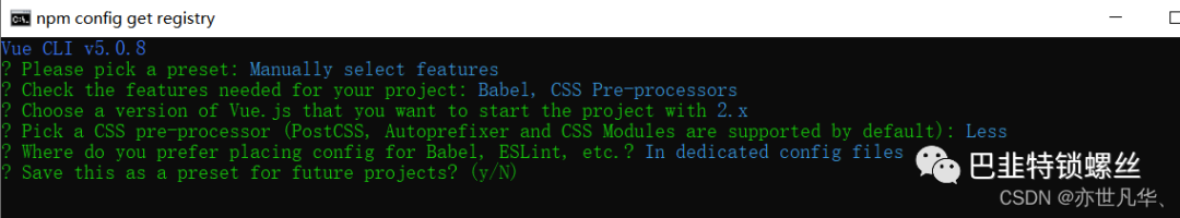 回车之后出现以下界面,询问你是否要将之前的配置进行一个预设,方便下次创建项目时直接按照预设的创建而不用再进行一次手动创建了: