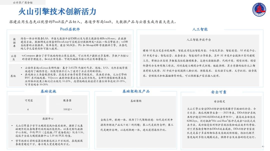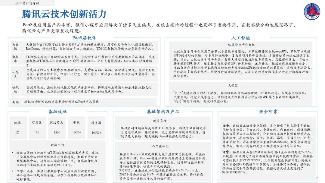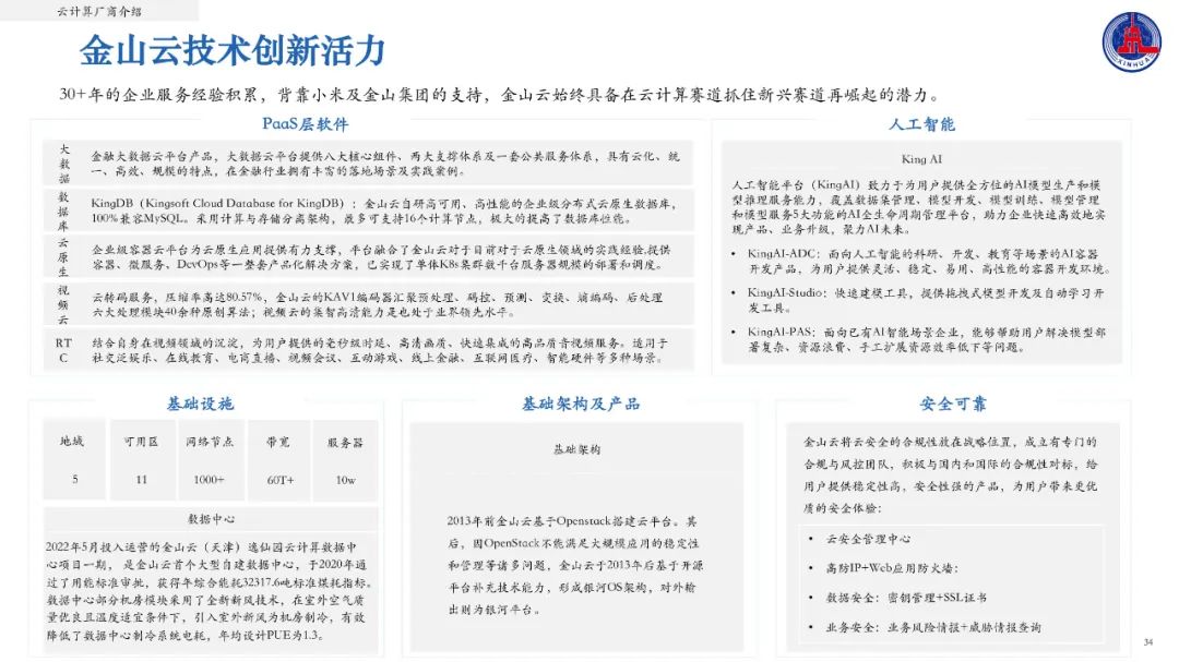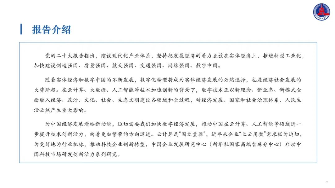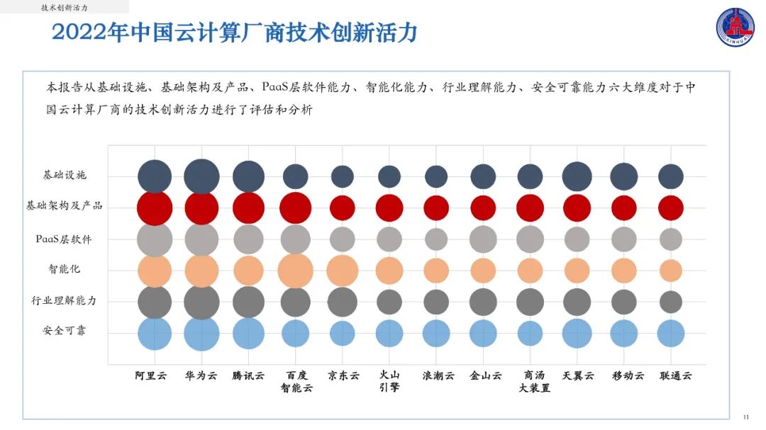 近日,中国企业发展研究中心、新华社国家高端智库中心在第五届中国企业论坛上对外正式发布了《中国云计算创新活力报告》(以下简称“云报告”)。《云报告》从基础设施、基础架构及产品、PaaS层软件能⼒、智能化能⼒、⾏业理解能⼒、安全可靠能⼒六⼤维度对于中国云计算厂商的技术创新活⼒进⾏了评估和分析,第一次全面展示了中国云计算厂商的整体竞争力和品牌差异化影响。