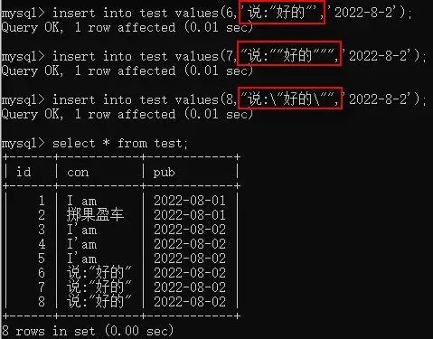 错误示例:数据原文含双引号,在cmd和Navicat中,都会提示报错,