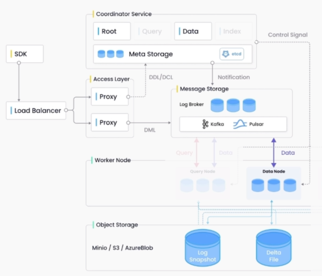 Object Store:Object store 当前采用了 minio,主要用来存储数据,索引等。