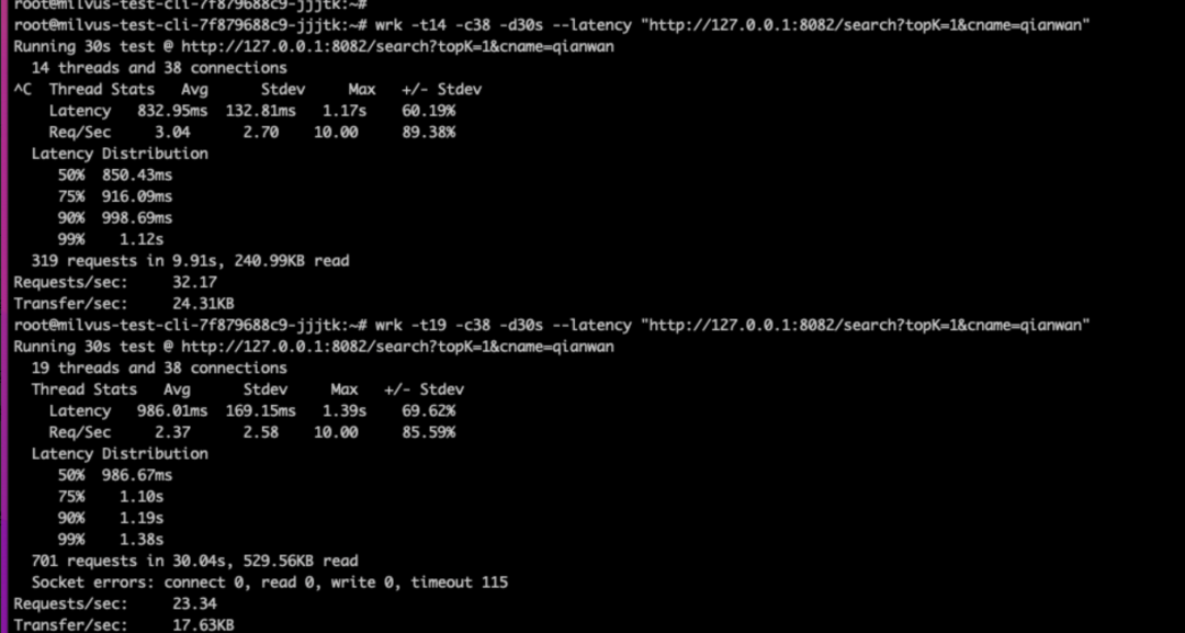 通过压测,我们发现某场景下存在 Milvus 的性能提升不上去的问题,并给出基于该场景的解决方案,社区反馈给 Milvus 官方。
