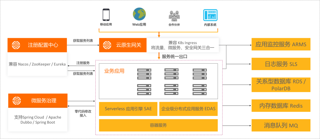 可观测能力。提供完整的流量可视化视图,支持全局看板、网关实例监控、日志检索、业务 TOP 榜、日志投递、以及报警管理等功能。能够帮助用户直接的了解到微服务治理能力开启后产生的效果,更全面的了解微服务应用的运行状态。