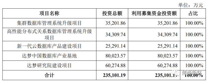 本次IPO,公司拟募资23.51亿元,用于集群数据库管理系统升级项目、高性能分布式关系数据库管理系统升级项目、新一代云数据库产品建设项目及达梦研究院建设项目。