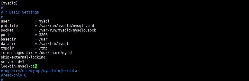 log-bin=mysql-bin:需要打开日志文件,必须,这里有些人会指定一个目录,但是笔者指定一个目录之后发现mysql就启动不起来了,这里直接设置为 mysql-bin 就可以,生成的文件过后是可以使用命令查看的