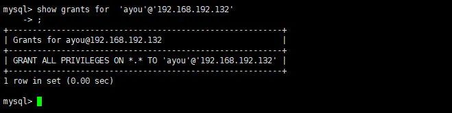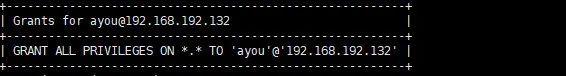 show grants for 'ayou'@'192.168.192.132'