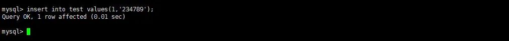insert into test values(1,'234789');