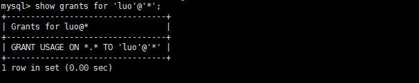 grant select ON *.* to `luo`@`*` identified by'123456';