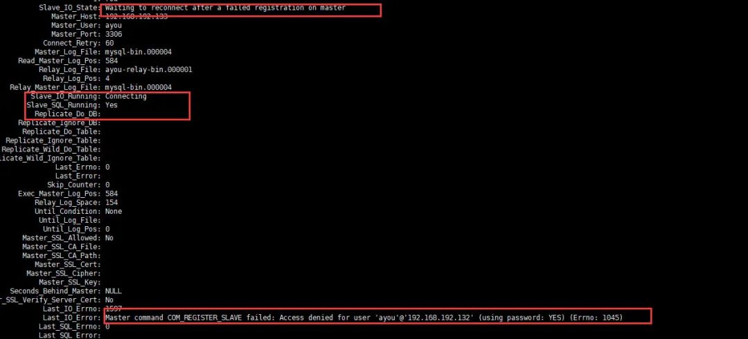 在搭建过程中出现,Slave_IO_Running:NO