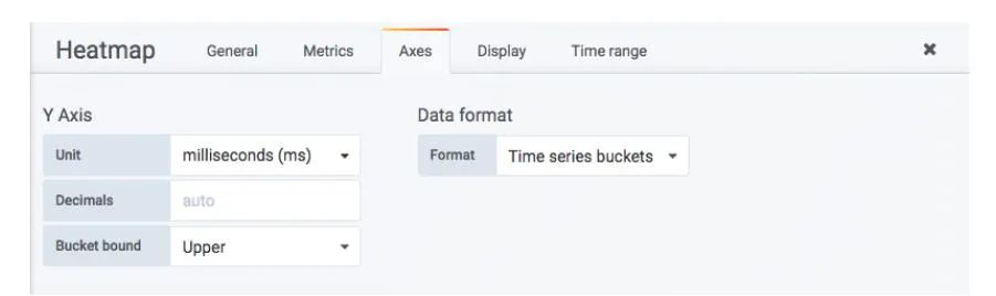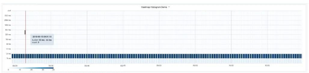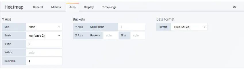 在Y轴(YAxis)中需要通过Scale定义Bucket桶的分布范围,默认的Bucket范围支持包括:liner(线性分布)、log(base10)(10的对数)、log(base32)(32的对数)、log(base1024)(1024的对数)等。