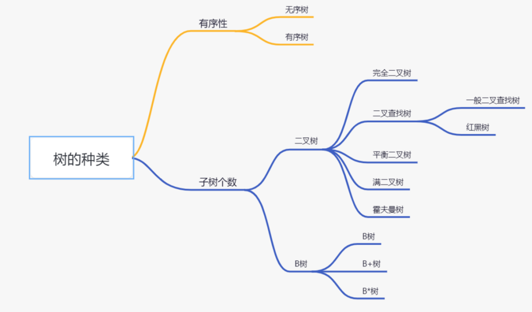 按照节点包含子树个数,可以分为B树和二叉树,二叉树可以分为以下几种: