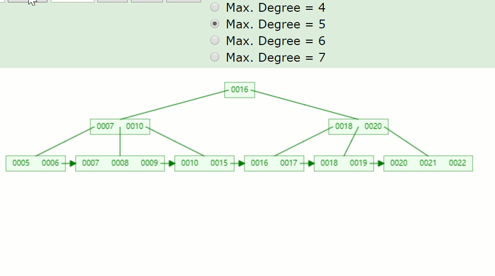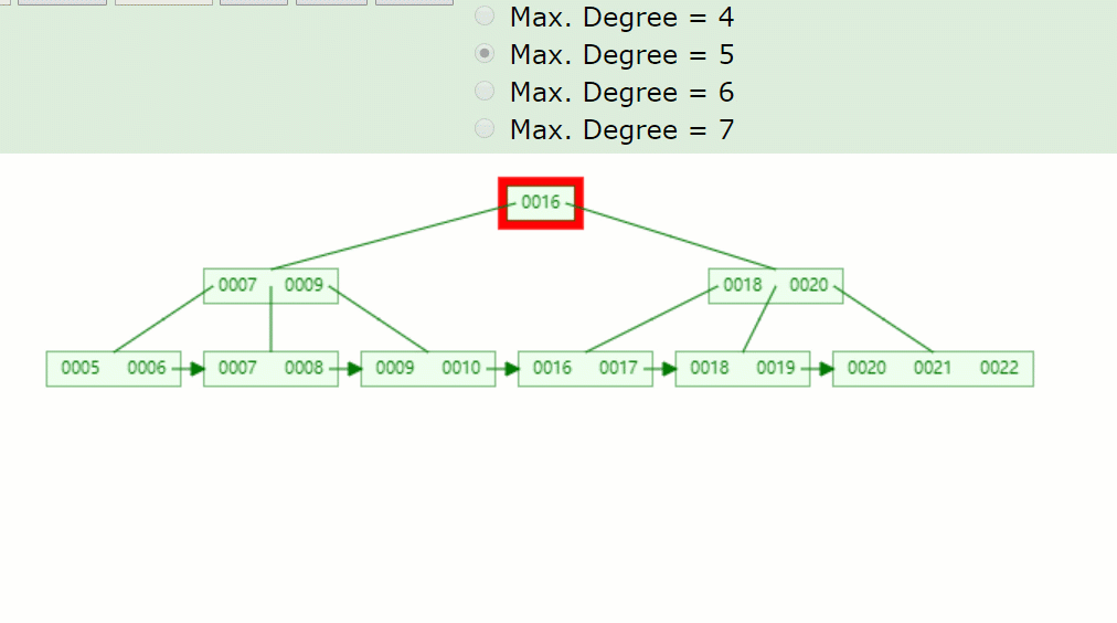 找到包含关键值的结点,如果关键字个数大于⌈m/2⌉-1,直接删除即可; 找到包含关键值的结点,如果关键字个数大于⌈m/2⌉-1,并且关键值是当前节点的最大(小)值,并且该关键值存在父子节点中,那么删除该关键字,同时需要相应调整父节点的值。 找到包含关键值的结点,如果删除该关键字后,关键字个数小于⌈m/2⌉,并且其兄弟结点有多余的关键字,则从其兄弟结点借用关键字 找到包含关键值的结点,如果删除该关键字后,关键字个数小于⌈m/2⌉,并且其兄弟结点没有多余的关键字,则与兄弟结点合并。