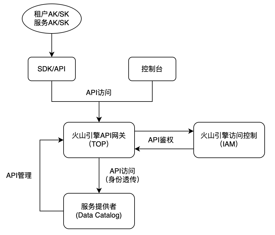 Data Catalog 借助于 API 网关管理 OpenAPI,包括注册和开通、访问控制、限流等。 API 规范:火山引擎 OpenAPI 有明确的参数规范,Data Catalog 也需符合该规范,但因内部 OpenAPI 参数格式不同,需做兼容,考虑到新 API 的支持成本,借助于 Spring 的 Interceptor 和 Advice 以及定制 JSON 序列化和反序列化逻辑,实现了自动的参数格式转化,降低 API 格式兼容的开发成本。 访问控制:火山引擎作为云服务提供商,使用业界规范的 AKSK 密钥管理规范,API 使用者需创建 AKSK 并通过该信息来访问 API 才可通过访问控制,而 API 网关会通过 IAM 进行鉴权,通过后会给服务提供者也就是 API 注册者透传用户的身份(如租户 ID,用户 ID),方便 API 提供者使用。 安全认证:处理 API 网关提供的基础鉴权,Data Catalog 也增加了更多机制来保障安全性,包括双向认证、租户开通状态检测等。 API 文档:对于每一个 OpenAPI 都根据火山引擎规范编写了详细的参数说明,汇总为一个正式 API 文档,方便用户查阅使用。