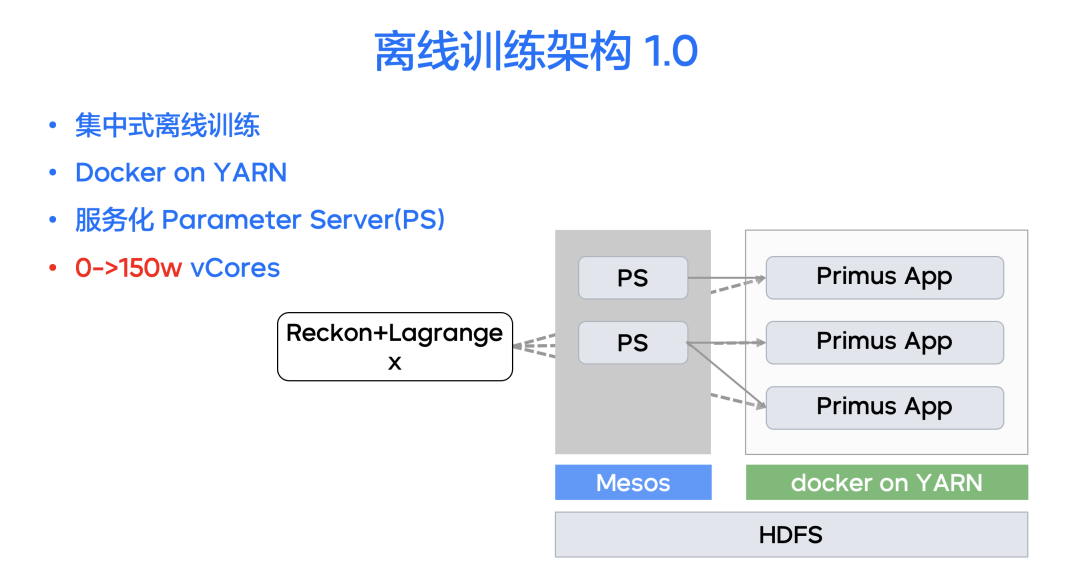 离线训练框架 1.0 系统诞生于 2015 年 10 月(内部代号 Zion)。