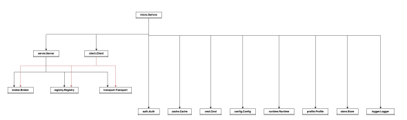 type Service interface {// The service nameName() string// Init initialises optionsInit(...Option)// Options returns the current optionsOptions() Options// Client is used to call servicesClient() client.Client// Server is for handling requests and eventsServer() server.Server// Run the serviceRun() error// The service implementationString() string}