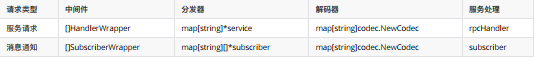 rpcHandler:⼀个微服务可定义多个rpc服务,每个rpc服务对应⼀个的rpcHandler,通过map的形式保存在rpcServer中。
