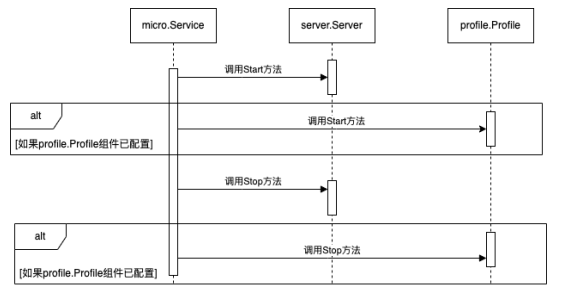 如果profile.Profile已经配置到了micro.Service的Options中,调⽤profile.Profile的Start⽅法来启动Profile组件。