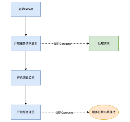 使⽤micro.Service的Run⽅法启动微服务时,调⽤server.Server的Start⽅法来启动Server组件。