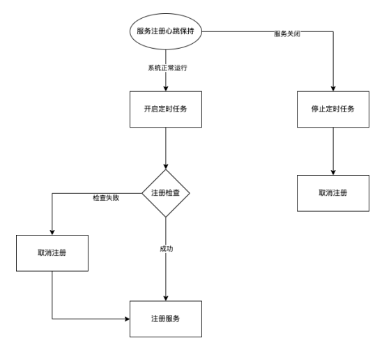 系统正常运⾏时,开启定时任务。每隔30s使⽤RegisterCheck定义的⽅法进⾏注册检查,检查通过时,直接使⽤Register注册;检查失败时,先使⽤Deregister⽅法取消注册,再使⽤Deregister⽅法重新注册。
