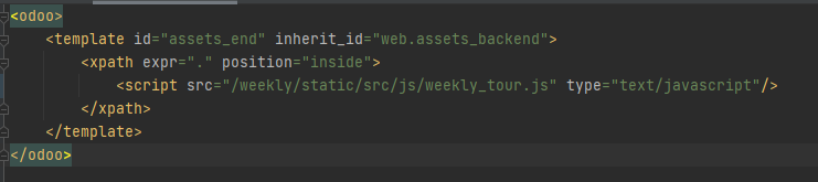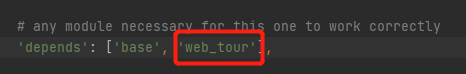 在__manifest__.py文件中添加使用引导悬浮框所需的依赖模块(web_tour),如不添加,后续代码运行将报错