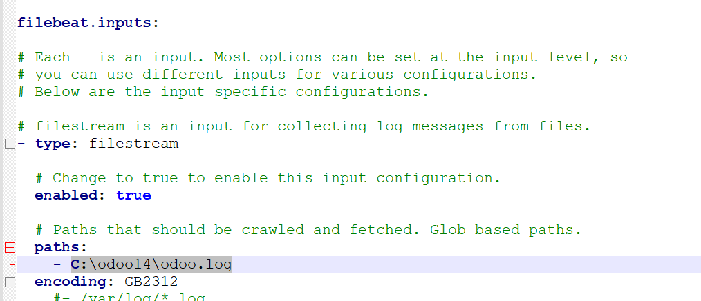 解压filebeat文件,解压后修改配置文件filebeat.yml,将其收集路径的日志文件改成服务的日志文件路径。