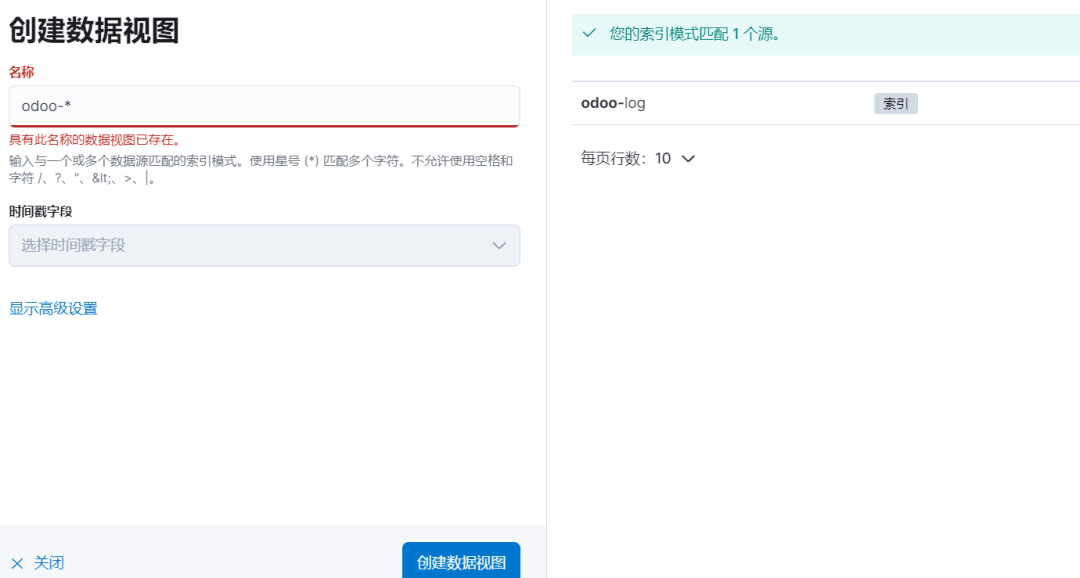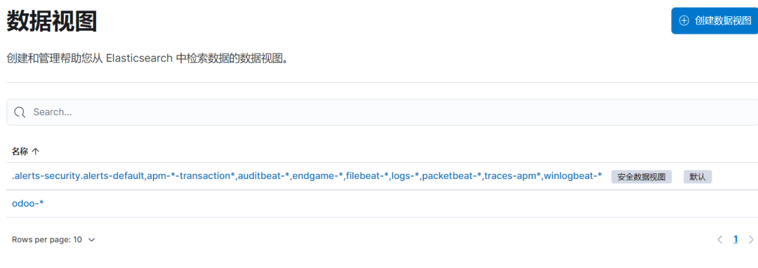 这里名称起名为odoo-*,点击创建数据视图即可。创建成功后,在数据视图列表可以自己创建的视图: