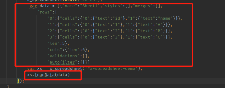 2、在spreadsheet.js中初始化json数 据