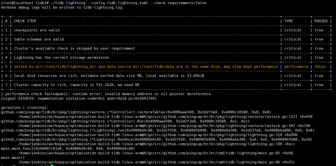 ./tidb-lightning --config tidb-lightning.toml --check-requirements=false