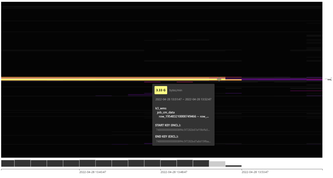 经过手动切分region后把请求分摊到3个TiKV节点中,但Unified Readpool CPU还是都达到了80%左右,热力图最高每分钟流量6G。