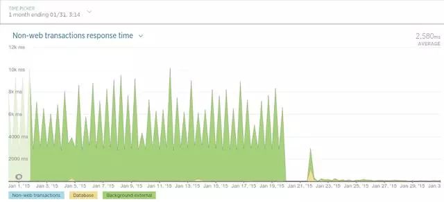 迁移是在1月21日进行的,最大的高峰只是应用程序执行了硬重启(导致该过程中的响应时间稍慢)。21日之后,平均响应时间几乎缩短了一半。