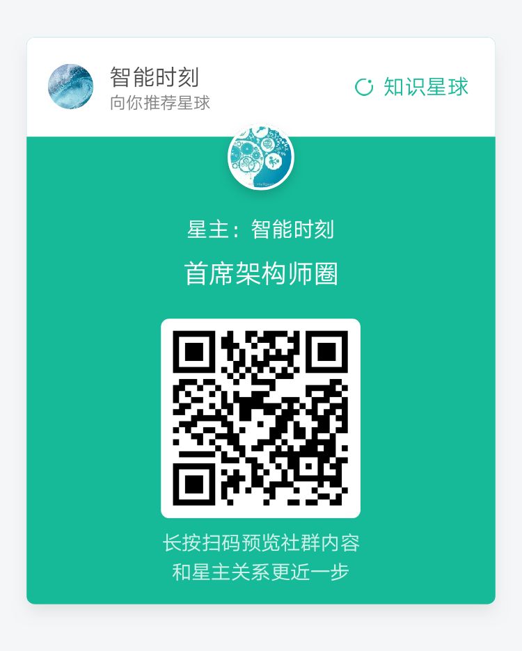 如果想向大咖提问,近距离接触,或者获得私密分享,请加入知识星球【首席架构师圈】