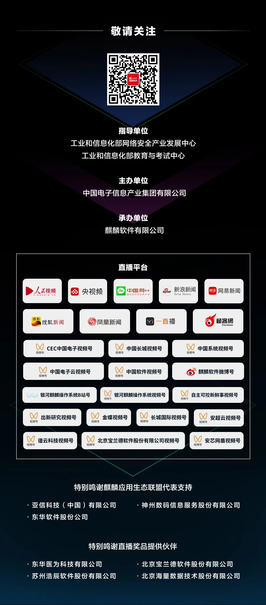 1月9日,“麒心协力 创新永恒”操作系统产业峰会将在人民视频、央视频、中国网++、新浪新闻、网易新闻等媒体平台以及麒麟软件官方平台同步直播,让我们一起见证国产操作系统开年“大戏”!