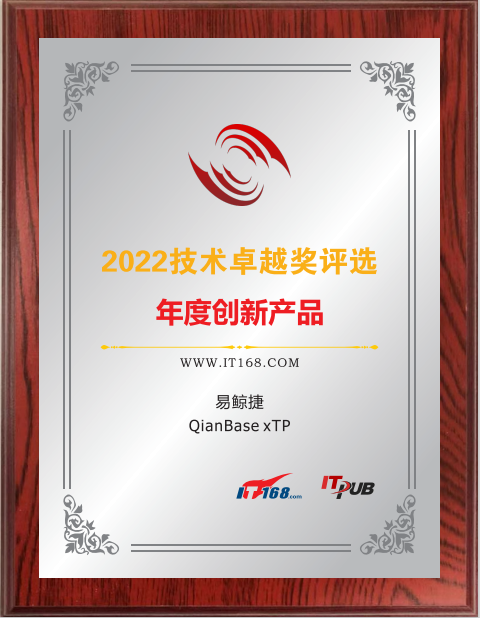 近日,由IT168主办的《2022年度技术卓越奖》评选正式揭晓获奖名单,易鲸捷QianBase xTP在此次评选中获得“2022年度产品创新奖”。