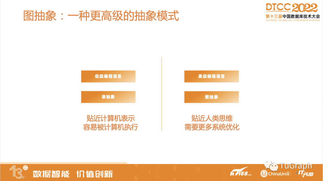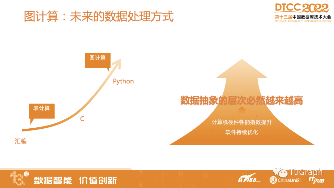 计算机编程语言的发展是从低级向高级演变的,数据抽象也是一样。我们认为,未来的数据抽象一定会对人更友好一些,而不是专注于对机器更友好。如图所示,编程语言的发展是从低级语言向高级语言转变的,我们也认为数据抽象层次也会慢慢从低层次表格抽象向高层次图表抽象发展。