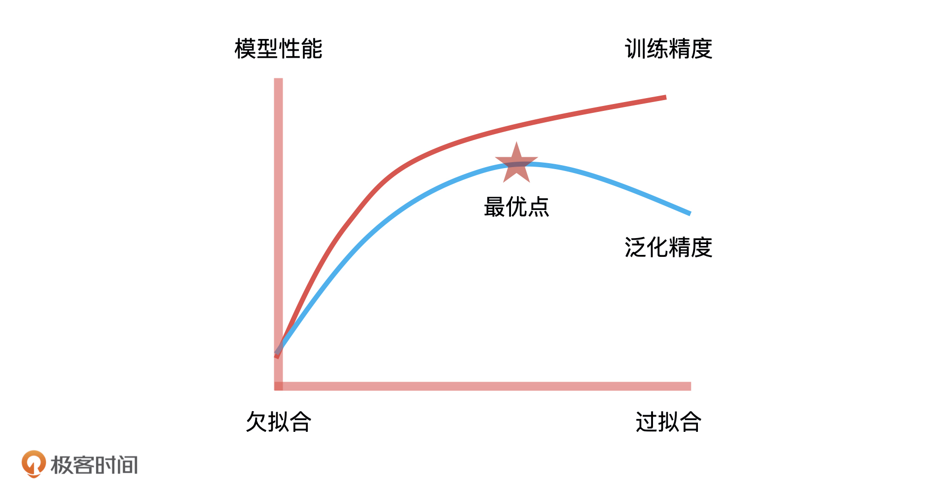 对于模型训练来说,这个风险和收益的平衡点,就是拟合能力与泛化能力的平衡点。