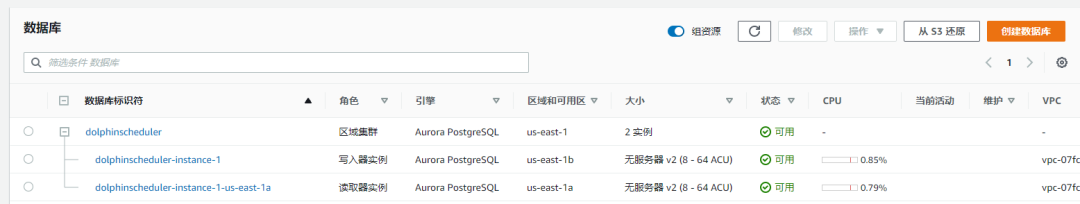 ##修改镜像仓库地址为AWS ecrimage:registry: "xxxxxx.dkr.ecr.us-east-1.amazonaws.com" -- ECR镜像地址tag: "3.1.2"##使用外部数据源postgresql:enabled: falsemysql:enabled: falseexternalDatabase:type: "postgresql"host: "dolphinscheduler.cluster-xxxxx.us-east-1.rds.amazonaws.com"port: "5432"username: "postgres"password: "xxxxxxxx"database: "dolphinscheduler"params: "characterEncoding=utf8"## 使用S3 存储资源文件conf:common:resource.storage.type: S3resource.aws.access.key.id: xxxxxxxresource.aws.secret.access.key: xxxxxxxxxresource.aws.region: us-east-1resource.aws.s3.bucket.name: dolphinscheduler-resourseresource.aws.s3.endpoint: https://S3.us-east-1.amazonaws.com