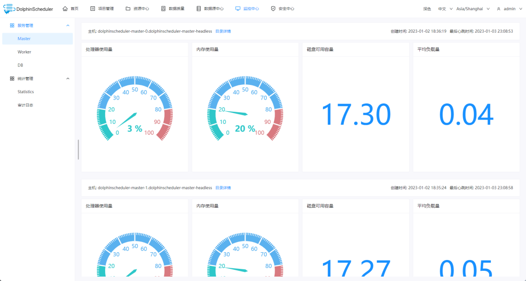 ## 扩缩容 api 至3个副本kubectl scale --replicas=3 deploy dolphinscheduler-api -n dolphinscheduler## 扩缩容 master 至2个副本kubectl scale --replicas=2 sts dolphinscheduler-master -n dolphinscheduler## 扩缩容 worker 至2个副本kubectl scale --replicas=6 sts dolphinscheduler-worker -n dolphinscheduler