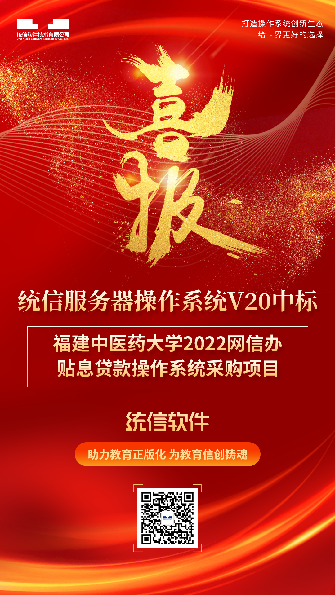 近日,统信软件参与“福建中医药大学2022网信办贴息贷款操作系统采购项目”竞标,凭借在教育信创领域的持续深耕、产品的安全性及丰富的教育应用生态,统信服务器操作系统教育版成功中标!