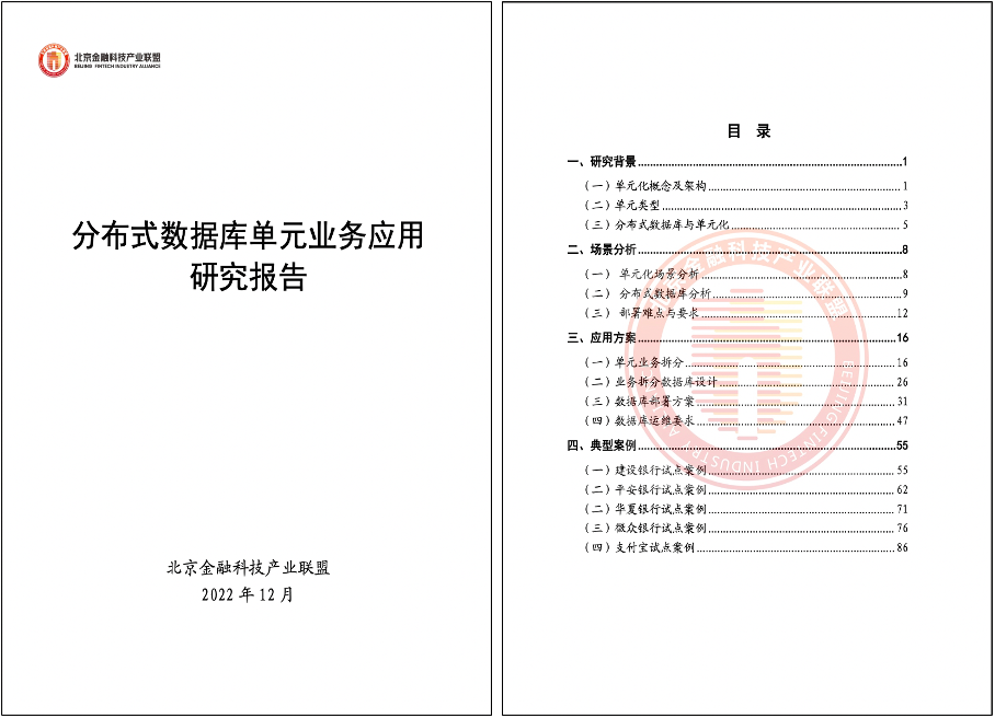 近日,北京金融科技产业联盟发布了《分布式数据库单元业务应用研究报告》(以下简称:报告),腾讯云是报告的主要参编单位之一。报告分析整理了金融机构分布式数据库在单元化场景部署实施的需求,从单元化拆分、单元与分布式数据库部署对应、单元扩容、高可靠、灰度发布、数据同步及运维解决方案等多方面阐述分布式数据库在单元化业务场景下的部署思路,并提供了多个金融行业典型案例,为金融机构在单元化业务应用场景中使用分布式数据库提供参考。