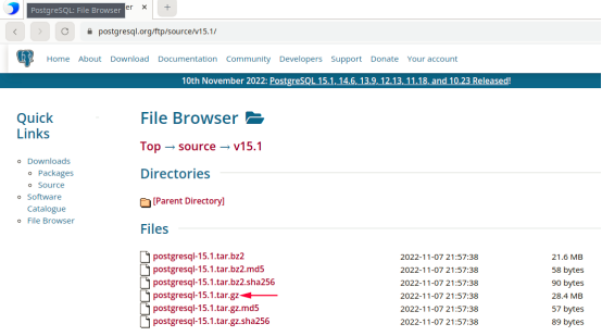 scott@scott-PC:~/Downloads$ tar -xvf postgresql-15.1.tar.gz