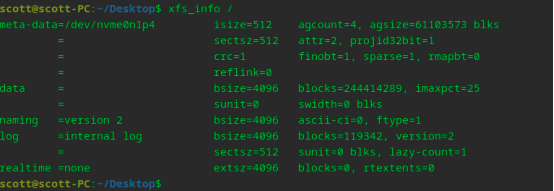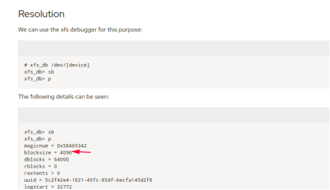 上述截图来源:How to show characteristics of a not mounted XFS Fielsystem?