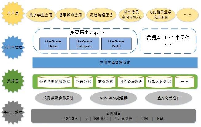 基于银河麒麟操作系统的GIS平台解决方案依托易智瑞公司GIS平台及产品强大和完善的制图和空间分析能力,服务于数字孪生、智慧城市、能源与基础设施、自然资源管理、交通运输以及应急保障等领域,帮助用户挖掘空间数据的全部潜能以提高其运营及业务能力。
