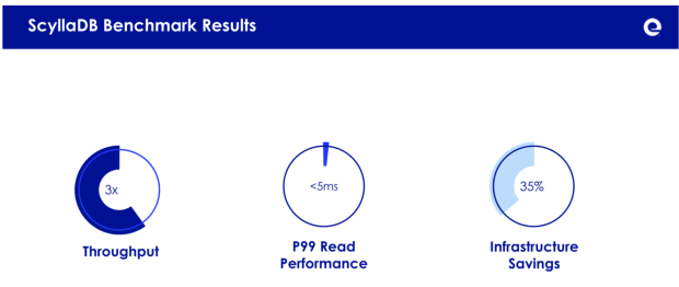 使用 Cassandra 时,P99 读取延迟以前是尖峰的,每天从 20 到 80 毫秒不等。使用 ScyllaDB,它始终在 5 毫秒左右。ScyllaDB 的吞吐量接近 Cassandra 的三倍。此外,ScyllaDB 还节省了 35% 的基础设施成本。