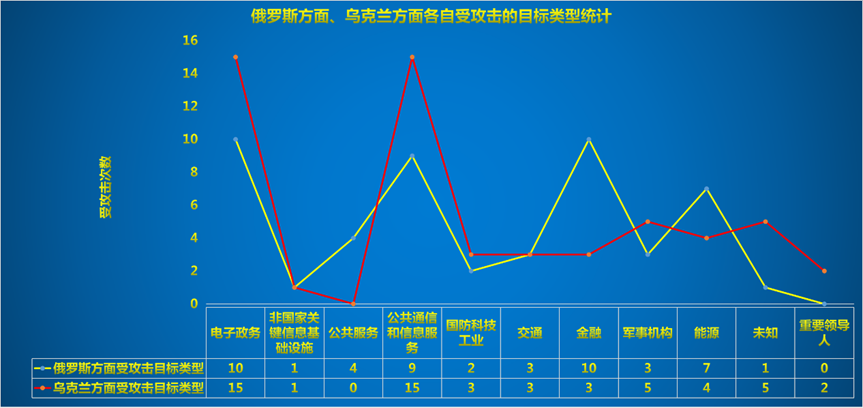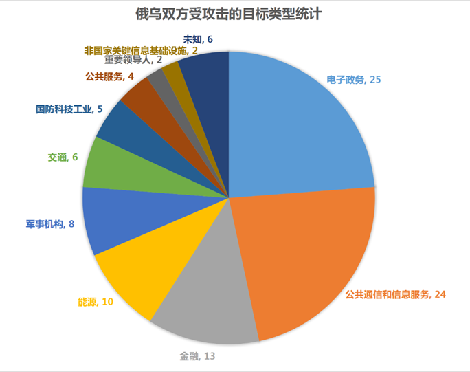 图3 俄乌双方受网络攻击的目标类型总数统计
