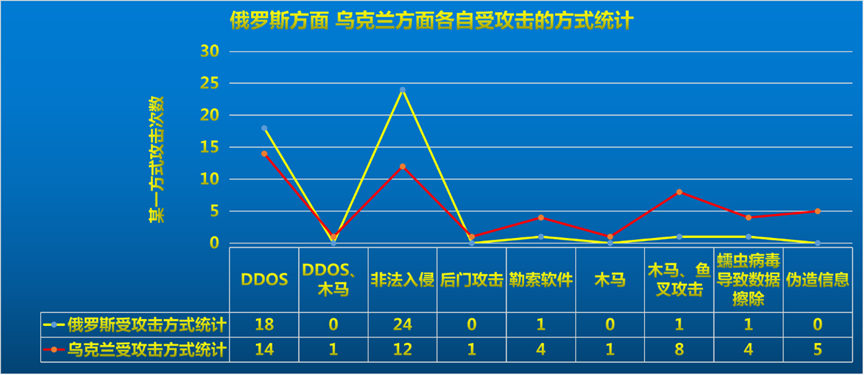 图6 俄罗斯方面、乌克兰方面各自受攻击的方式统计
