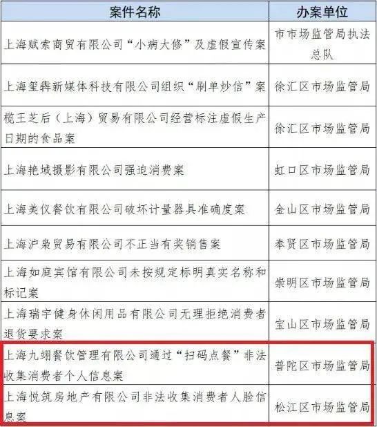 7、上海点名10家企业,涉及扫码点餐、人脸识别等非法收集个人信息