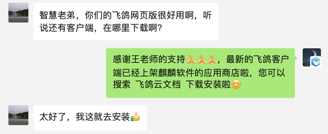 (特别提示:飞鸽客户端需配合后端服务一起使用,请您下载安装前与麒麟软件的小伙伴们联系部署,期待您的使用!)